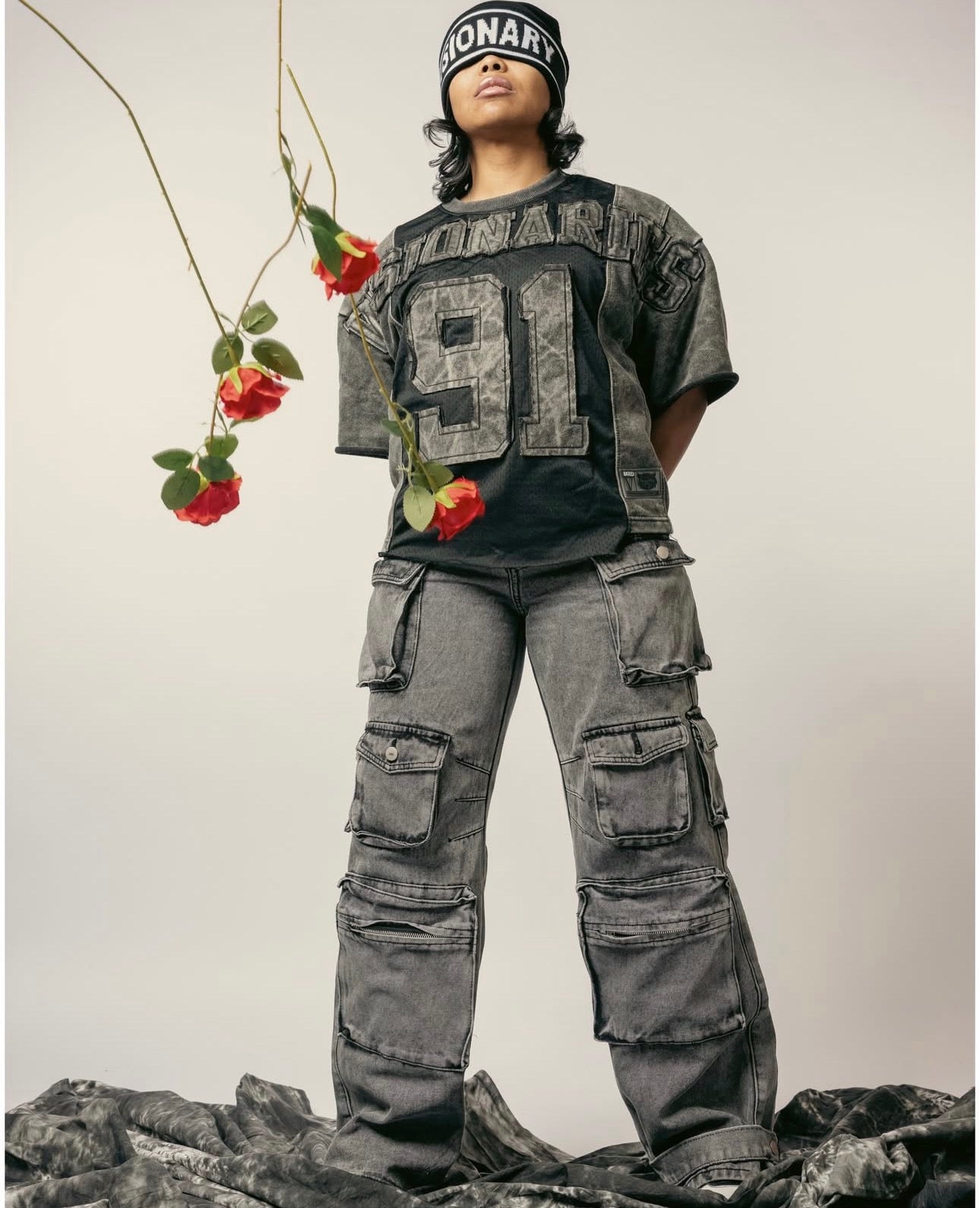 This is not your average jersey. The '91' Stone Wash Street Jersey is an aggressive fusion of athletic heritage and modern streetwear. Built with a relaxed, oversized fit, this piece immediately commands attention.