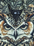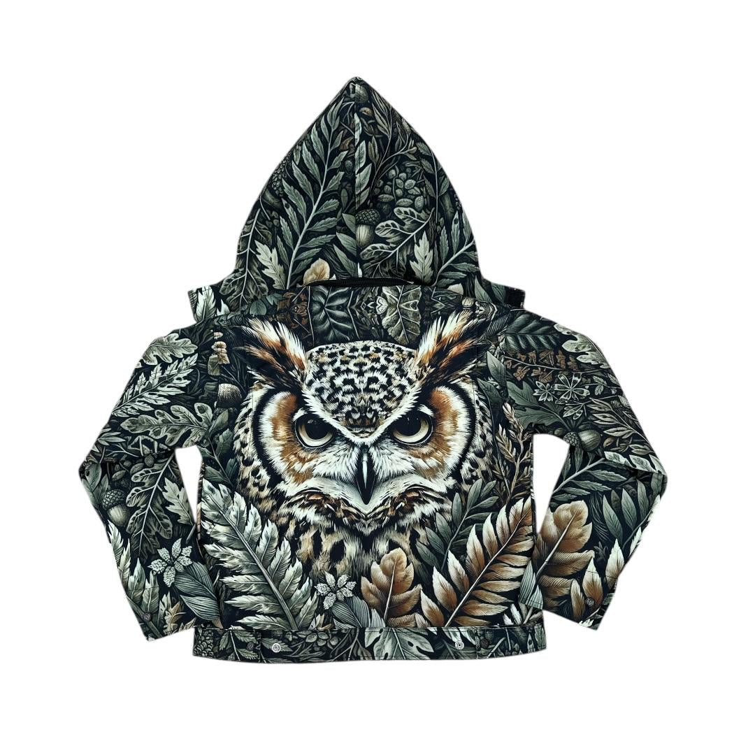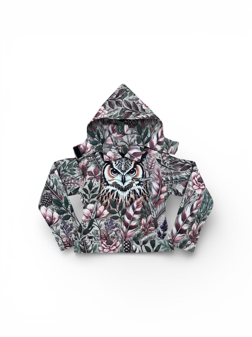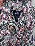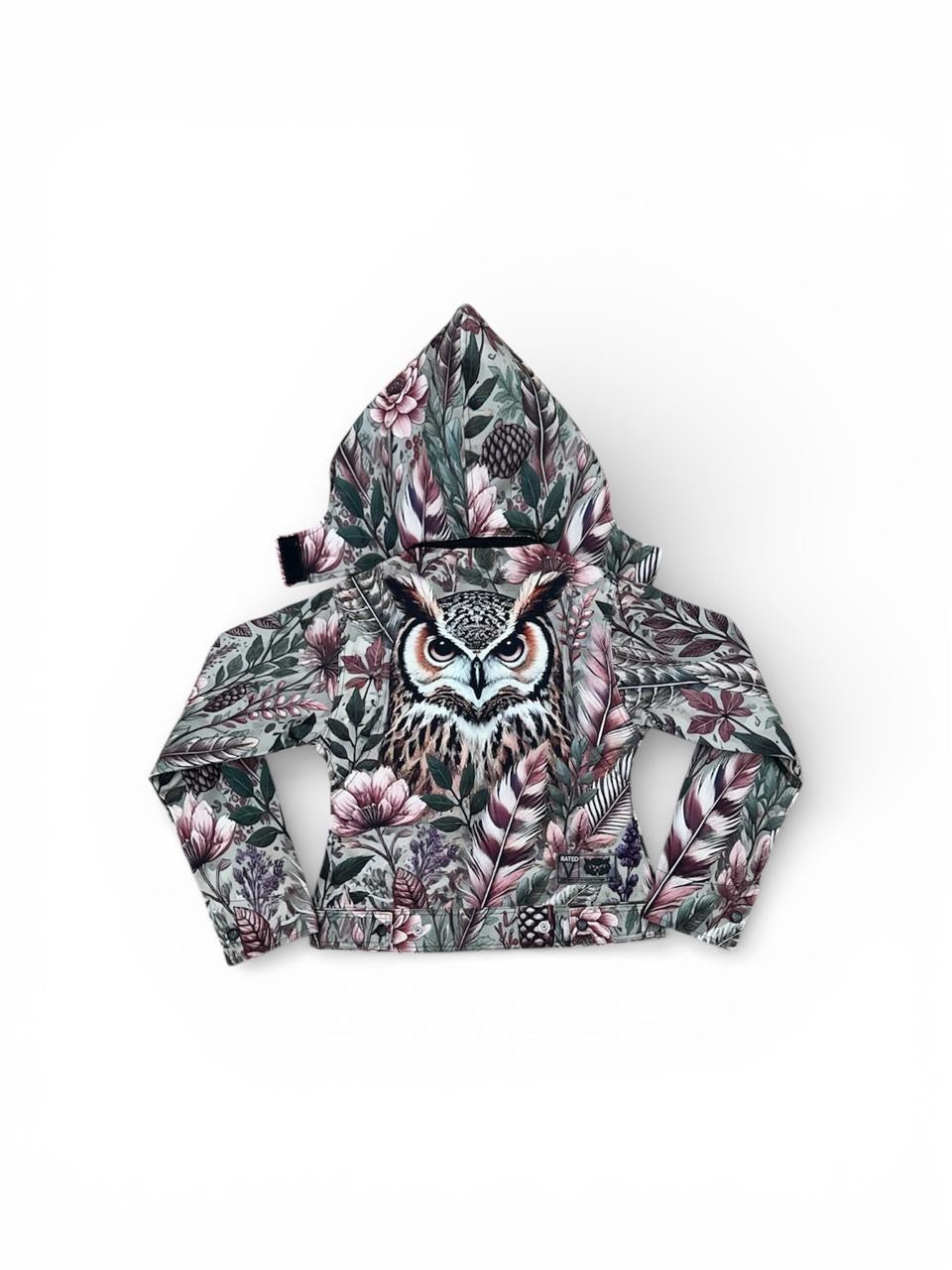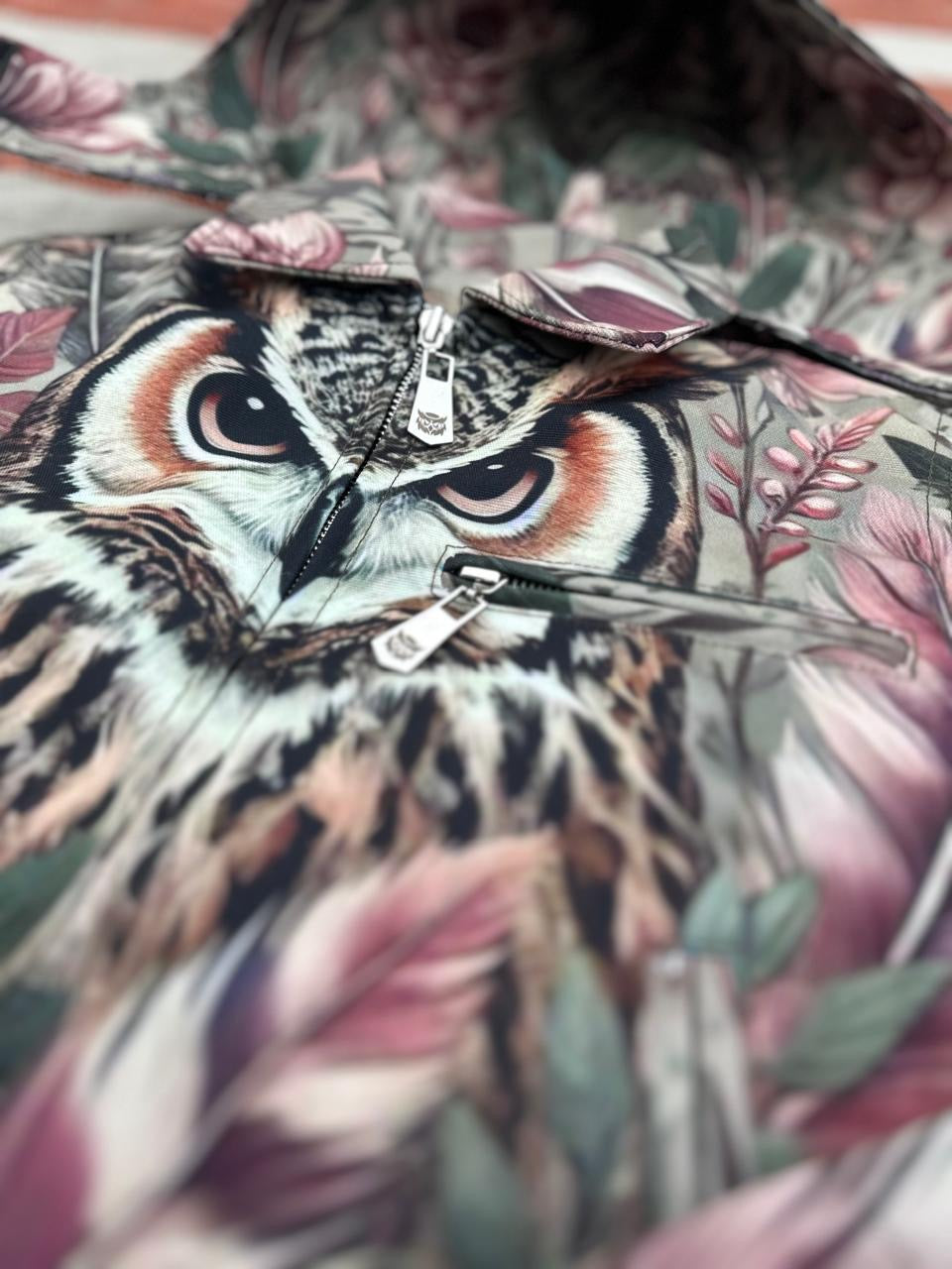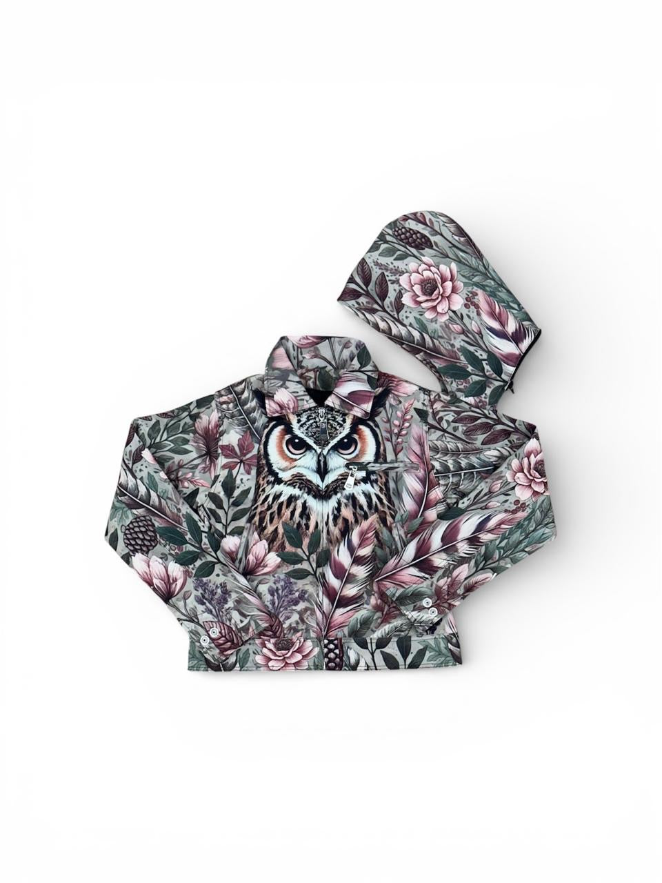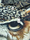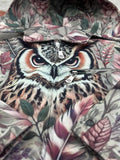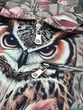 - Design: Detailed embroidered owl and feather artwork
