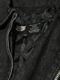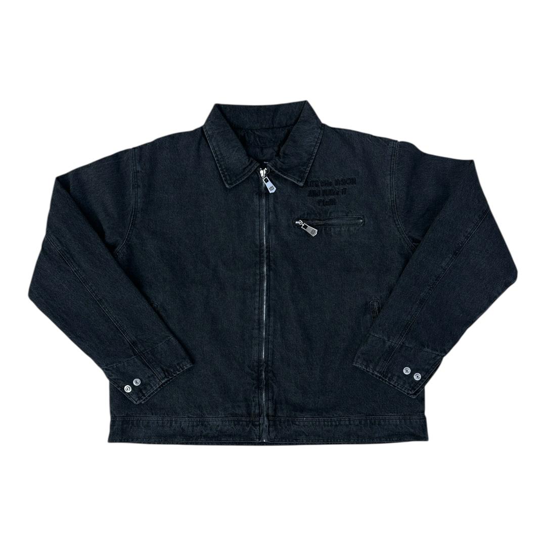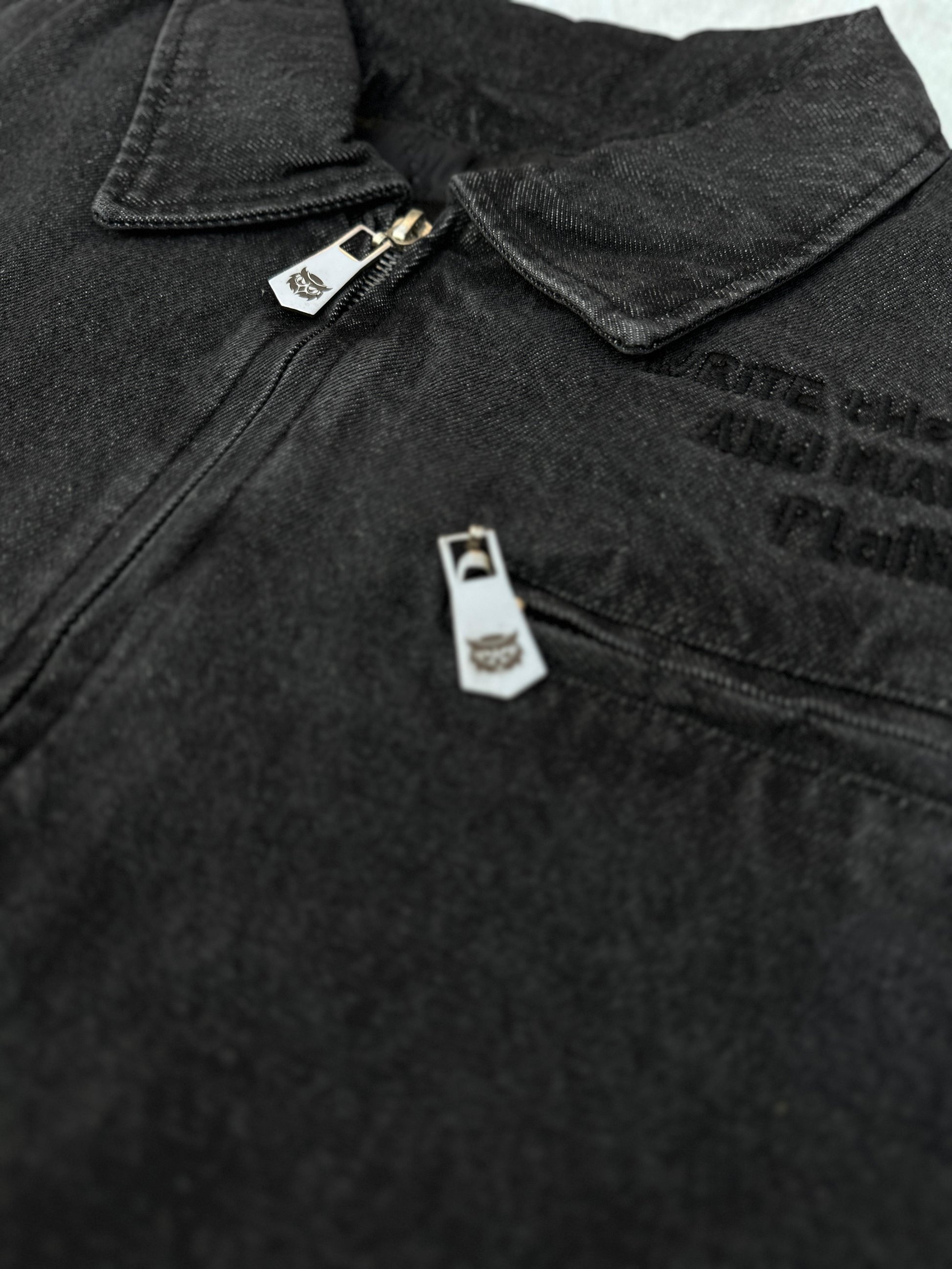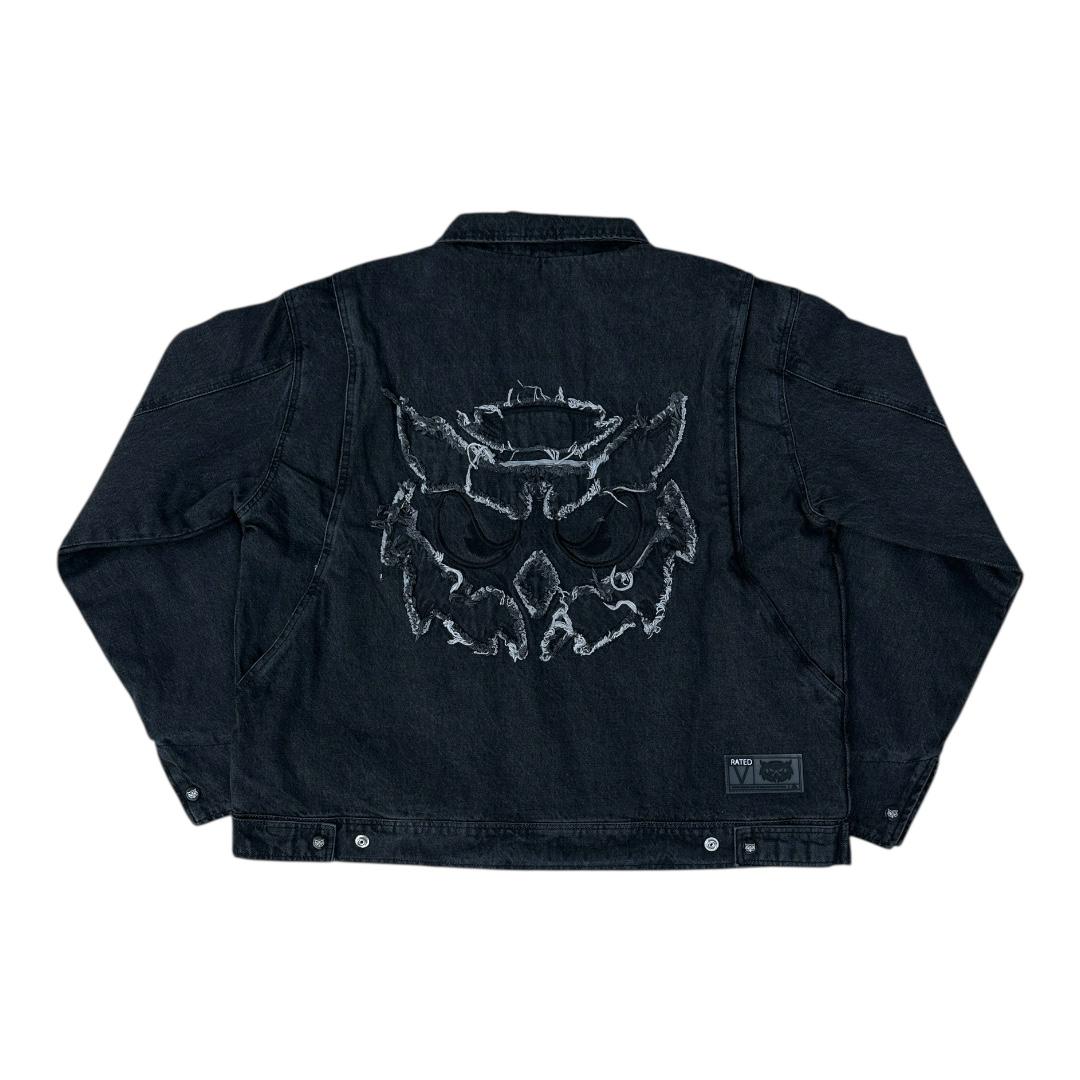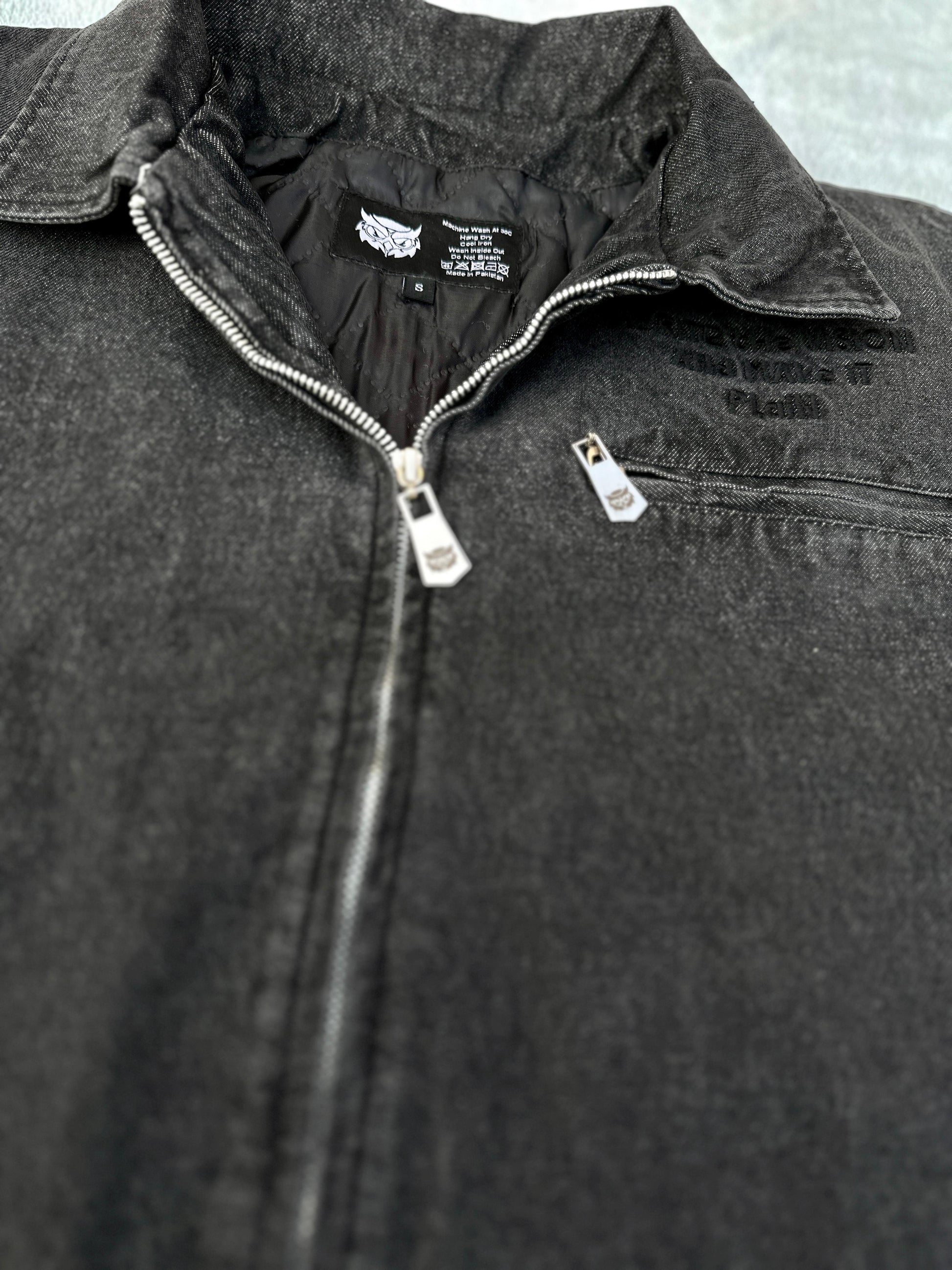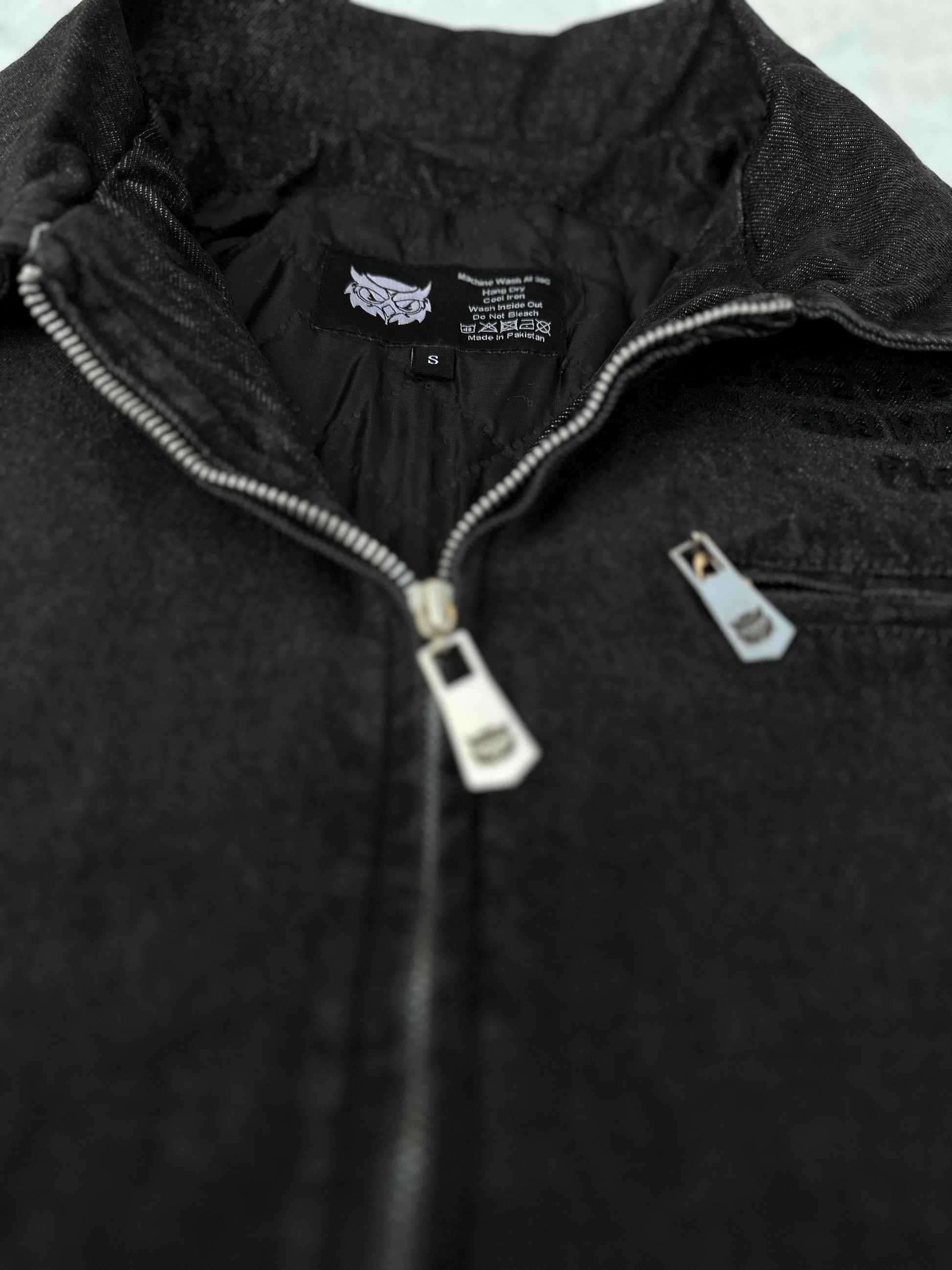 This is a stylish acid-washed black denim jacket that embodies a bold and visionary aesthetic. The front features an embroidered message: “WRITE the VISION And Make it Plain,” adding a touch of inspiration and purpose. The back showcases an oversized distressed owl embroidery, representing wisdom and vision, aligned with the Visions Collection brand. With its distressed detailing and comfortable fit, this jacket makes a statement while offering timeless versatility.